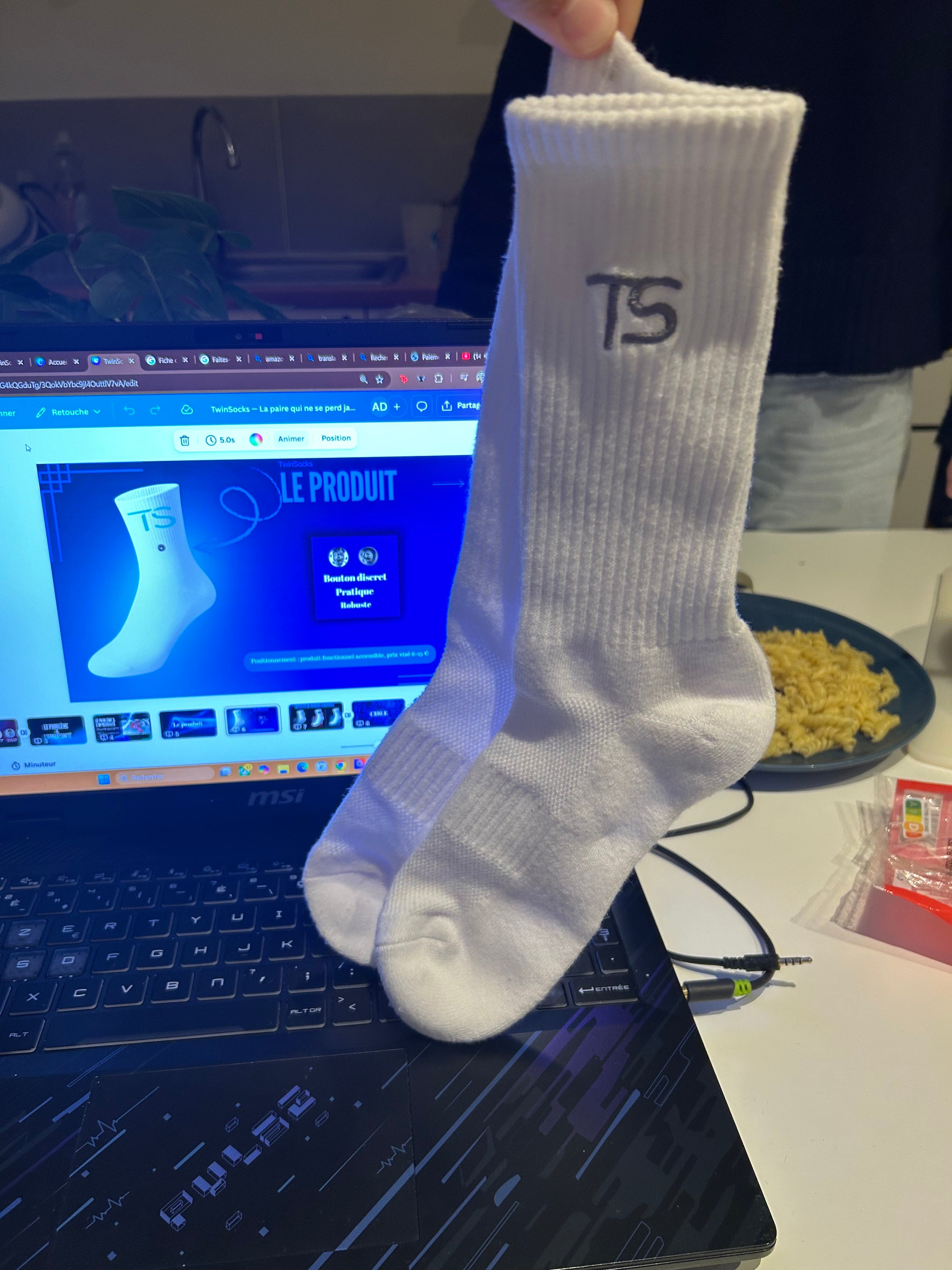 les chaussettes sont relié grace a un bouton de pression robuste pratique et discret
